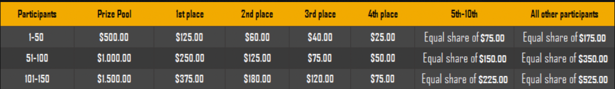$1,500 Weekend Multiplier Battle Hey Everyone! We're thrilled to announce an all-weekend event with the Habanero provider. It'll be running from October 14 at 12:30 pm GMT until October 17, 12:30 pm GMT. It's easy to participate, you just need to get the highest multiplier possible in the Habanero games listed below. And it doesn't stop there, all eligible participants will be awarded equally. Enjoy the weekend in this exciting event! – (Check all the conditions of taking part below). Duration: 14/10/2022 12:30pm – 17/10/2022 12:30pm UTC Prize Pool: $1,500 Eligible Games: Play below games to participate in this event: Pumpkin Patch Magic Oak The Dead Escape Santa's Village The highest multiplier reached in each game will be added together and counted as total points. Bonus buys are allowed. If the player submits multiple winning entries for the same game, the entry with the highest multiplier will be valid. Minimum VIP Tier Must be VIP04 or higher in order to enter this event. Minimum Payout Minimum payout to qualify is 10x (in any game) for a valid entry. Minimum Bet Size Pumpkin Patch - $0.25 Magic Oak - $0.20 The Dead Escape - $0.30 Santa's Village - $0.15 Eligible Coins All cryptocurrencies are eligible (excepting JB, and BCL). Free Play Mode is not valid for this event. Prize Pool & Reward Breakdown The winners will win a share of the prize pool based on the detailed ranking below. All other participants who complete all minimum requirements will receive a 35% share of the prize pool. How to Enter Access the game to select your Bet ID, click on the Share icon (↷) and then Copy link. Return to the topic, paste the link in the field "Reply to this topic..." E.g.: https://bc.game/#/sd/10V17TH7FAOJDF In the same post, upload a screenshot of your win by clicking the game ID WITH VIEW IN USD mode ENABLED (accessible at the bottom of dropdown menu for your wallet up top, and Submit Reply. Done! This way, we can ensure that your bet indeed met the minimum requirement at the time of placing it: https://bc.game/#/sd/10V17TH7FAOJDF Additional Rules: Please combine all of your hits together in a SINGLE post. Edit your existing post for additional hits, don't create a new post. Each eligible entry must have the Bet Slip URL, failure to include it will disqualify participation in the event. Bet Slip image is not mandatory. Bets must be posted within 24 hours of placing bet in order to keep things fair for everyone. Bets must be made during the specified time window stated above. This thread will lock automatically when the time period is over. One (1) entry per household. Anyone found attempting to win multiple prizes will be disqualified from this challenge as well as all future challenges. Failure to follow instructions will result in your submission being null and void. By entering this challenge, you acknowledge that BC.Game has the final decision on results and placement. Payouts will be distributed after the event is finished. Please note that it could take anywhere between 24 hours to 7 days after the completion of the event.