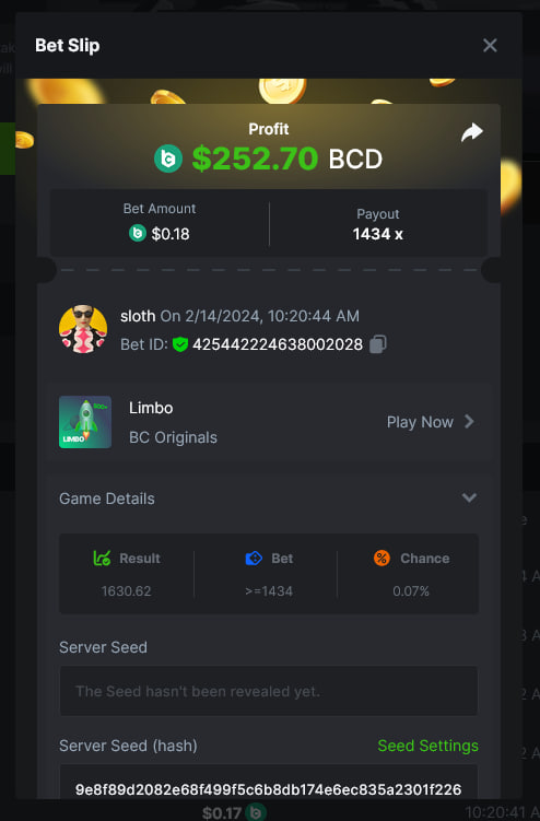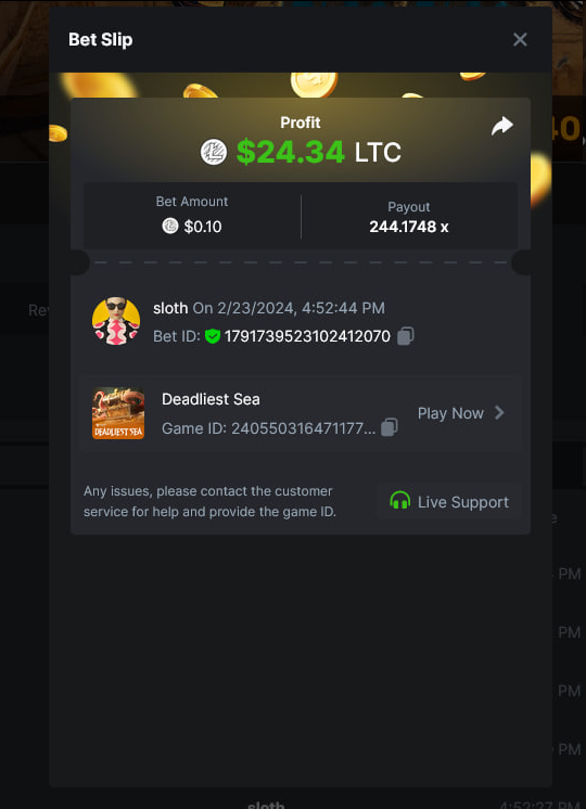 Wizard`s Academy - 470.287x https://bc.game/#/sd/11TA6BMYKQZBNZ Deadliest Sea - 244.1748X https://bc.game/#/sd/11TA2PER3KQ1EB Dragon Quest - 240.1733x https://bc.game/#/sd/11TA3E2NJCAHZN