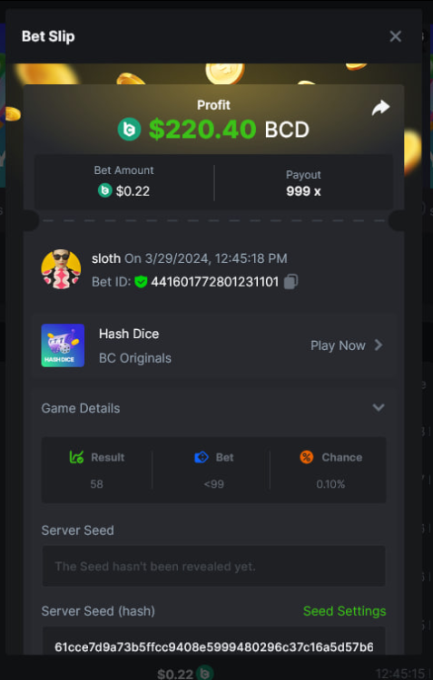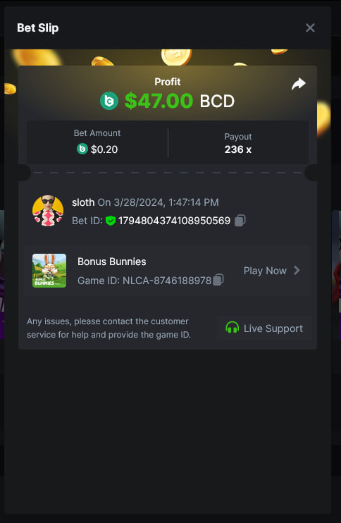 Total Points 30/30 EASY 1 https://bc.game/#/sd/11VO77GATVCCXF 2 https://bc.game/#/sd/11VO36FOYPH48V 3 https://bc.game/#/sd/11VKFQKFWOAMU7 4 https://bc.game/#/sd/11VKM1H288HRNB 5 https://bc.game/#/sd/11VKG5J0NO13JB 6 https://bc.game/#/sd/11VKLQZGL749P7 7 bet id 2388541117525266478 8 https://bc.game/#/sd/11VKH3DCZZR72Z 9 https://bc.game/#/sd/11VKHRDODKPPY3 10 Both done. MEDIUM 1 https://bc.game/#/sd/11VKEFPNPAVZIZ 2 https://bc.game/#/sd/11VKDDJO482EBN 3 https://bc.game/#/sd/11VKE9CI6RTUE7 4 bet id 2388491552407298304 5 https://bc.game/#/sd/11VJN7D9T73JFR 6 https://bc.game/#/sd/11VKERZ2NQWVER 7 * There is a problem with blackjack bet slips. all of the bets in history shows as 0 value in bet slip.blackjack hand is visible at bet slip game info ss .i also added ss of bill showing the bet with game id. bet is 2 bcd. Thank you https://bc.game/#/sd/11VOQRXMFX4X27 8 https://bc.game/#/sd/11VLQJAKYSW9P7 9 https://bc.game/#/sd/11VLS5NLHTDLWB 10 https://bc.game/#/sd/11VLWDXNBYDIRB HARD 1 https://bc.game/#/sd/11VJO4ADTOF1NJ 2 https://bc.game/#/sd/11VMPUDVWNOGCN 3 https://bc.game/#/sd/11VMKBWDTF65NF 4 https://bc.game/#/sd/11VOIUG63W4GGV 5 https://bc.game/#/sd/11VO9PCVEW7R4B 6 https://bc.game/#/sd/11VOO6VJNW78Y3 7 https://bc.game/#/sd/11VMKUB6AK9HJ7 8 https://bc.game/#/sd/11VODUXB33W0GV 9 https://bc.game/#/sd/11VOH4GG3LZ55Z 10 bet id 2385379590152524000