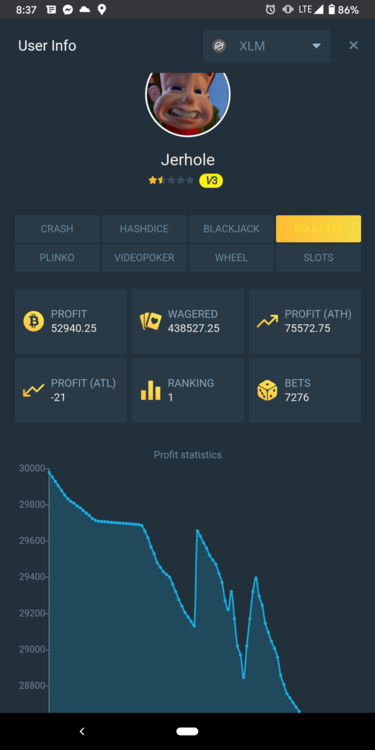 2. Any way to improve the ranking rewards and a reward per each crypto type. Maybe display ranking with win and lost amount next to it. (example, I've been too 1 xlm roulette for awhile now, according to my profile. Though I have yet to receive any kind of reward. It's been explained to me that losses subtract from taking, which makes sense but, why does it still display me as#1 then?) Also, I don't think sweet codes actually exist, they're a myth. Like a unicorn, with money bags