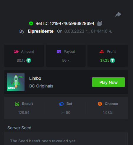 $1,500 Booongo Mid-Week Multiplier BattleElpresidente replied to BC_Jack's topic in Past Challenges https://bc.game/#/sd/1112WMTLYQXG5V https://bc.game/#/sd/1113R4ND68RG9F https://bc.game/#/sd/1113RSKZRXSTUB https://bc.game/#/sd/1113SL6Z71T72R https://bc.game/#/sd/1113TMPO10NWUR