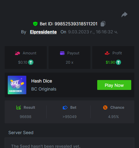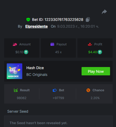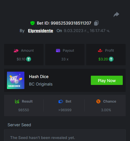 $1,500 Exclusive Weekend Hash Dice Prestige Challenge #76Elpresidente replied to BC_Jack's topic in Past Challenges https://bc.game/#/sd/115380BPA5YWIB https://bc.game/#/sd/1153844FAG9N9V https://bc.game/#/sd/115389IUV1QJO3 https://bc.game/#/sd/11538E39V2MZ9V https://bc.game/#/sd/11538JGSHHE2OJ https://bc.game/#/sd/11538ONMCMFYMR