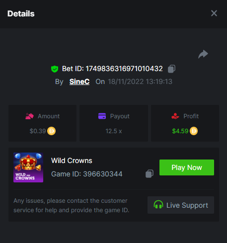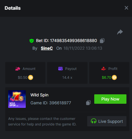 $4,000 Top Tier Spinomenal Multiplier Battle!SineC replied to BCGame_Ewa's topic in Past Challenges Book of Elves 211 https://bc.game/#/sd/10ZAS94LM9ARDF Book of Piggy Bank Riches 239 https://bc.game/#/sd/10ZAUE3ZVGOYS3 Wolf Gang - Golden Sands 34.6663 https://bc.game/#/sd/10ZB3213PM4DG3 Athena's Glory 51 https://bc.game/#/sd/10ZB465G7TDXXV Hut with Chicken Legs 45.4 https://bc.game/#/sd/10ZAW5FECXE1AR