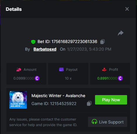 $1,500 Exclusive mid-week Roulette Prestige Challenge #73Grififth replied to BC_Jack's topic in Past Challenges https://bc.game/#/sd/114IJ0UOAGZLEB https://bc.game/#/sd/114IJ16FM75VKJ https://bc.game/#/sd/114IJ1H5GRJTAR https://bc.game/#/sd/114IJ1TKJG5EZ7 https://bc.game/#/sd/114IJ25N1IBPCJ https://bc.game/#/sd/114IJ2IX1ICFF7 https://bc.game/#/sd/114IJ2S8NCQNTF