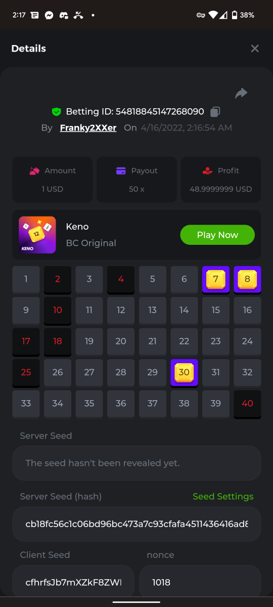 EASY: 1. Follow Instagram: whiteazn92 2. Post Photo/Video Tag BC.game: whiteazn92 https://www.instagram.com/p/CcUctBSu5Om/?utm_source=ig_web_copy_link 3. Follow BC on Twitter: Franky2XXer 4. Like and Retweet latest BC post: Franky2XXer 5. Follow BC Facebook page: Luke Hall 6. Cave of Plunder 7.50x: 7. 8. 20x multi Amatic Lady Fruits 100 Easter: 9. 30x Multi Gamomat Ramses Book Easter Egg: 10. Complete MEDIUM: 1. 10X Multi PlayNGo Easter Eggs: 2. Roulette Single Bet 0 (36X): 3. Get a 76x win on Plinko: 4. 60X Multi Wazdan Power of Gods Medusa Easter: 5. 6. 7. Keno Single 7, 8, 30 Medium Risk: 8. 90X Multi Big Time Gaming White Rabbit: 9. Black-Jack Only Red Cards: 10. HARD: 1. Wheel 49.5X: 2.PLINKO 420X: Bet ID#: 60146842272279722 3. Limbo 500X Multi: 4. 5. 6. 7. 8. 9. 10.