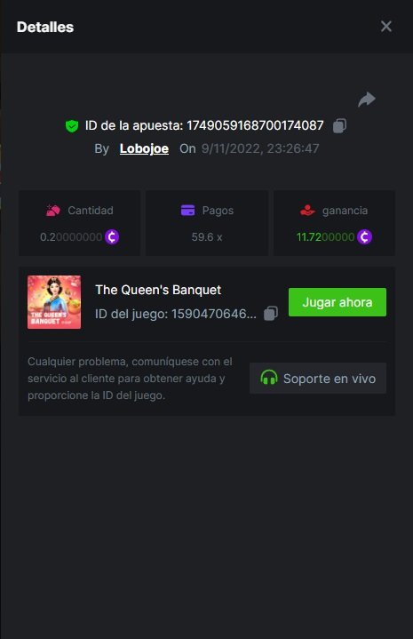 2. x382,50 ESTACAS DE ATRACO https://bc.game/#/sd/10WUFQ6OVXTXXV x143,60 GEMAS DE GARUDA https://bc.game/#/sd/10WUIWQ95KFDHV x75,35 EL BANQUETE DE LA REINA https://bc.game/#/sd/10WW3UQ81314B7 x84,20 MAJESTIC TREASURES https://bc.game/#/sd/10WUQP1L0H2Y37