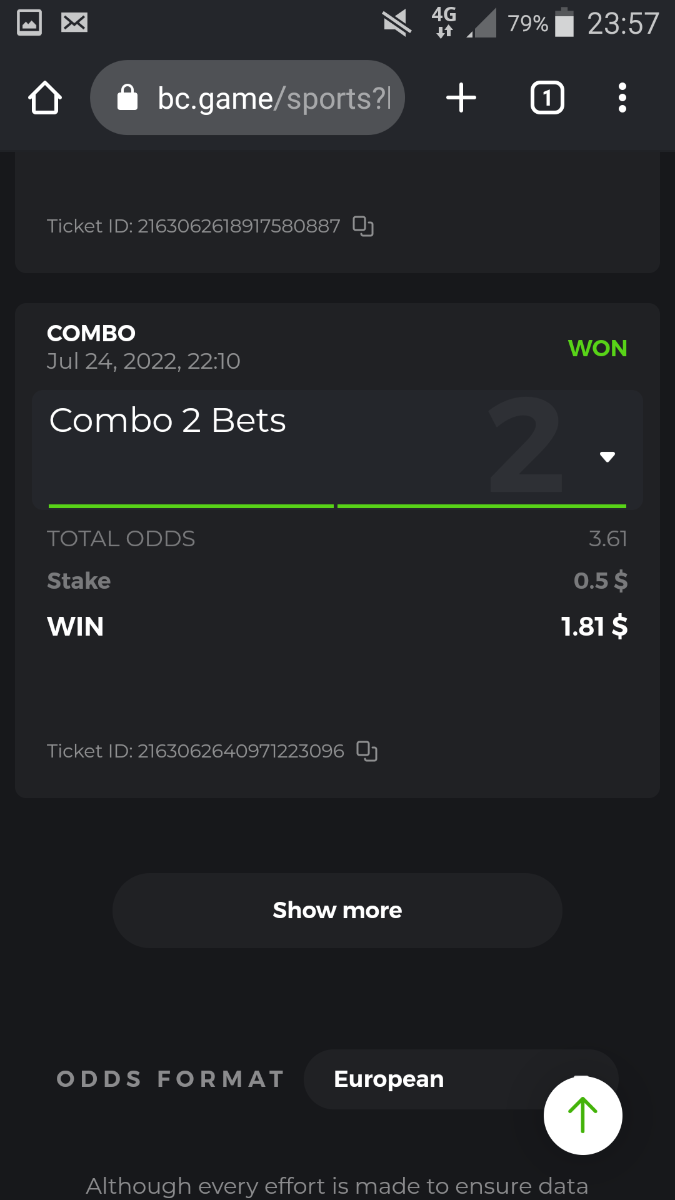 • To participate, post your Ticket ID, along with your Parlay link, as a reply to this thread as follows: Link bet: https://bc.game/sports/?bt-path=%2F%3FbtBookingCode%3D561A9D1 + Ticket ID 2126602890796736992