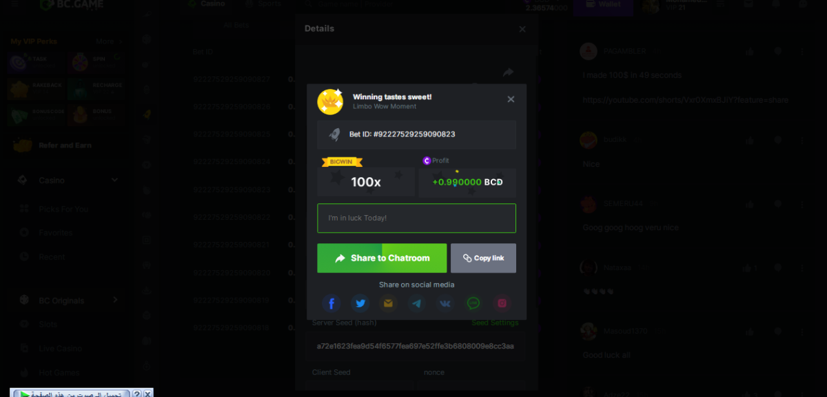 🔸 Share the win bet link (daily challenges)