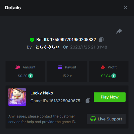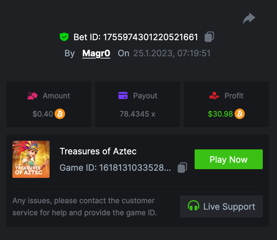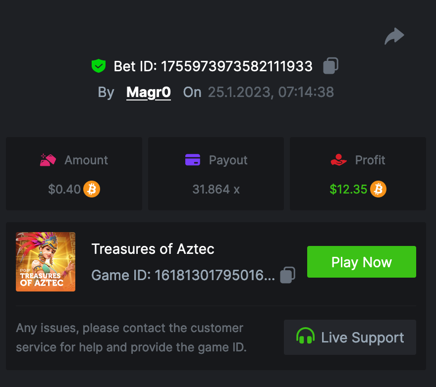 Saaho2022 Posted January 26, 2023 Share Posted January 26, 2023 Lucky Neko - 37.6 https://bc.game/#/sd/1126HZ19MK6FBN Totem Wonders - 10.5x https://bc.game/#/sd/1126FWS416F5ZN The Great Icescape - 54.16xhttps://bc.game/#/sd/1126GA83SGYFBN Lucky Piggy - 144.25 https://bc.game/#/sd/1126KBZZYMH2XF Treasures of Aztec - https://bc.game/#/sd/1126LMA9DJPRMB Link to comment Share on other sites More sharing options...