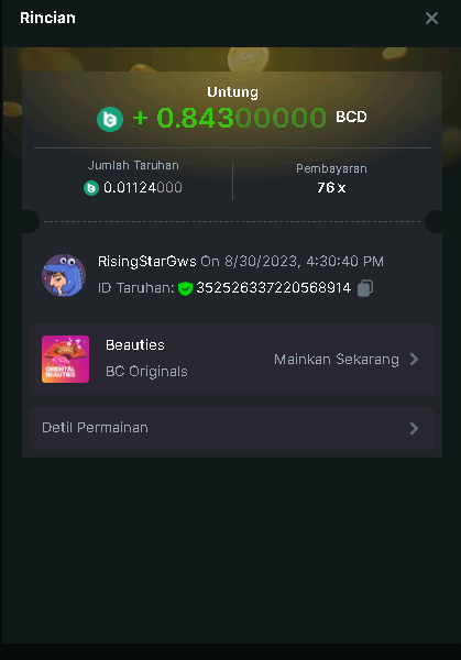 4th place . . . .  3$ BCD  - RisingStarGws - 76x  0.84