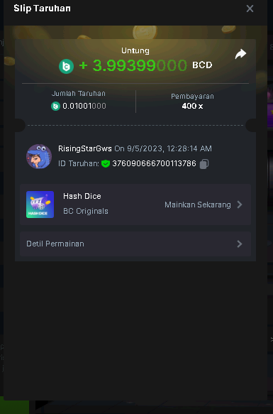Moderator Giandreas Posted September 4, 2023 Moderator Share Posted September 4, 2023 Read Carefully Before Start To Hunt Forum Daily Challenges #348 Hash DiceHunt : Hash DIce Win the highest pay out Min Payout min 20x Min Level 4️Duration Starting : Now End time : 23.59 UTC Time How to Join? Make screenshot + paste your bet link + UID or Profile link Any coin, with min bet 0.01 USD is allowed (jb/bb/bcl not allowed)Reward Prizes 1st Place.....$7 BCD 2nd Place.....$5 BCD 3rd Place.....$4 BCD 4th Place.....$3 BCD 5th Place.....$2 BCD 🏵 Winners will be announcing next day after Roll Point! 1 Link to comment Share on other sites More sharing options...