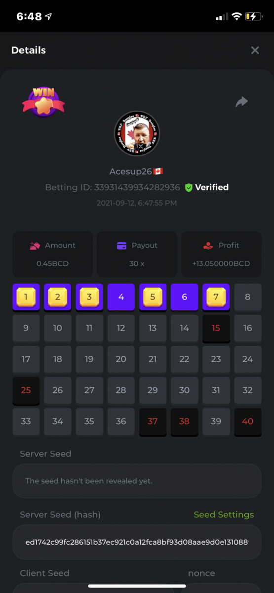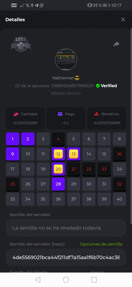 Nathsman Posted September 11, 2021 Share Posted September 11, 2021 On 6/9/2021 at 22:19, digitaldash said: DESAFÍO DE NIVEL SUPERIOR # 3 Inicio: 06:00, 7 de septiembre GMT Finaliza: 06:00, 14 de septiembre GMT ¡Bienvenido de nuevo! Quizás se pregunte por qué este desafío cuesta solo $ 2,000. Tendremos dos desafíos separados esta semana, y la segunda parte llegará muy pronto, ¡así que estén atentos a eso! ¡Esta semana, tenemos un desafío KENO! ¿Cuál es el desafío ? Complete la mayor cantidad de los siguientes 20 pagos en el modo multijugador de KENO o en el modo para un jugador de KENO . ¡Debes alcanzar un MÍNIMO de 5 de los pagos para calificar! 5.10x - 11x - 17.1x - 26x - 30x - 56x - 67x - 81.5x - 100x - 180x - 259x - 270x - 390x - 450x - 500x - 600x - 710x - 800x - 900x - 1000x Cada pago obtenido arriba cuenta como 1 punto, con un máximo de 20 puntos. Si hay un empate, el jugador con la apuesta total más alta (en USD) será el ganador. Los pagos deben ser resultados EXACTOS (56x y 50x no son lo mismo). Si no puede encontrar un pago, intente cambiar el nivel de riesgo a medio o alto. Nivel VIP mínimo Debe ser VIP10 o superior para participar en este desafío. Tamaño mínimo de la apuesta Equivalente a $ 0.35 (verifique los montos de monedas individuales a continuación) Monedas elegibles Todas las monedas son elegibles (excepto JB) Premios disponibles 1er lugar ...... $ 500 2do lugar ..... $ 375 3er puesto. .... $ 250 4to lugar ...... $ 125 5 ° al 25 ° ...... $ 25 Fondo de participación ... $ 250 dividido en partes iguales Cómo entrar Para participar, copie el ID de apuesta de la apuesta que le gustaría enviar. Una vez que lo haya copiado, publíquelo como respuesta a este hilo de la siguiente manera: ID de apuesta : 1708854428417660423 En la misma publicación, cargue una captura de pantalla de su ganancia haciendo clic en la ID del juego CON VISTA EN modo USD HABILITADO (accesible en la parte inferior del menú desplegable de su billetera en la parte superior. De esta manera, podemos asegurarnos de que su apuesta realmente cumplió con el requisito mínimo al momento de colocarlo: Combine todos sus éxitos en una SOLA publicación. Edita, no crees una nueva publicación. Las apuestas deben publicarse dentro de las 24 horas posteriores a la realización de la apuesta para que las cosas sean justas para todos. Las apuestas deben realizarse durante las ventanas de tiempo especificadas anteriormente. Este hilo se bloqueará automáticamente cuando termine el período de tiempo. Una (1) entrada por hogar . Cualquiera que intente ganar varios premios será descalificado de este desafío, así como de todos los desafíos futuros. Además, ¡irás al MURO DE LA VERGÜENZA para que todos vean que eres una estafa! Si no sigue las instrucciones, su envío será nulo y sin efecto. ¡Y que empiecen las carreras! Buena suerte a todos, esperamos ver quién gana esta semana. Link to comment Share on other sites More sharing options...