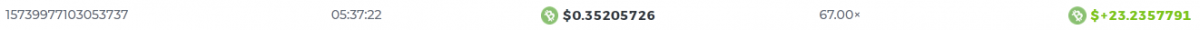 Fruitblood Posted September 11, 2021 Share Posted September 11, 2021 11x win bet id: 33663803342194183 56x win bet id: 33663803342194186 270x win bet ID: 33663803342194265 30x win bet ID: 33899691536023585 5.1x win bet ID: 33899691536023624 EDIT TO ADD: 17.1x win bet id: 33899691536023641 * Link to comment Share on other sites More sharing options...