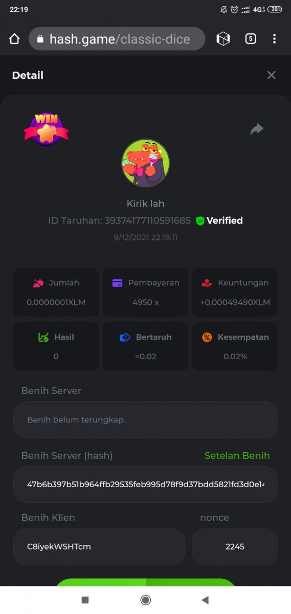Emonce Posted December 7, 2021 Share Posted December 7, 2021 2 hours ago, Wiro212sableng said: Hi guys.... Bertemu kembali di forum-discord challenge 6 yang selalu hadir dengan challenge yang berbeda. Namun buat yang belum gabung discord, kalian harus gabung di sini https://discord.gg/3xtjs7xg . Kenapa harus gabung? Karena kalian harus post screenshot bet id kalian di sana. Kembali ke challenge kali ini kalian harus menyelesaikan 4 Challenge untuk masuk kualifikasi. Juara 1, 2 dan 3 diberikan kepada user yg paling cepat menyelesaikan 4 Challenge tersebut. Challenge: 1. Hit limbo payout 4000x 2. Hit Hilo payout 444 3. Hit Classic Dice payout 4950x 4. Hit video poker 4 of kind kartu apa saja Koin bebas selain JB coin Challenge di mulai tgl 7 Desember dan berakhir 10 Desember 2021 pukul 21.00 pm Ketentuan challenge: 1. Tulis username kalian dengan mereply thread ini di bawah (Wajib) 2. Screenshot betid kalian di channel discord BcGame Indonesia 3. Khusus user Indonesia Hadiah Juara 1 shitlink 15 BCD Juara 2 shitlink 9 BCD Juara 3 shitlink 6 BCD 1 BCD shitlink untuk 15 user tercepat yg menyelesaikan minimal 2 challenge. Selamat berlomba!!! Emonce Link to comment Share on other sites More sharing options...