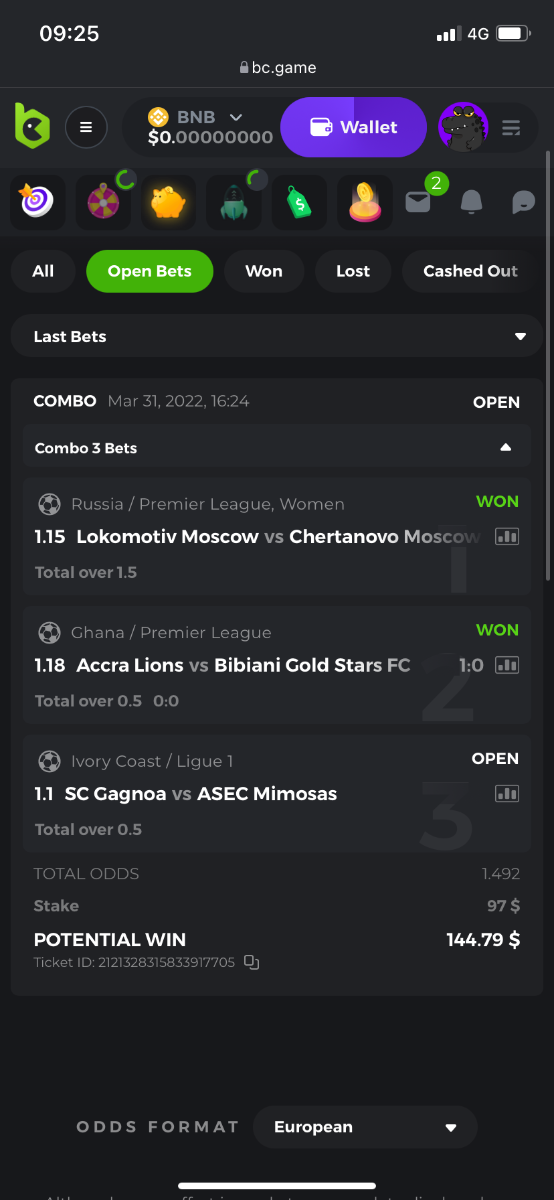 BCGame_POP Posted April 3, 2022 Share Posted April 3, 2022 Postponed means it should either be cancelled or refunded or maybe void in some cases. Make sure you are checking my bets in the same currency as the bet placed. Update: Your bet is not lost yet, it will be settled after re-scheduled match is finished. Link to comment Share on other sites More sharing options...
